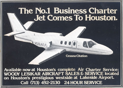 Up came the 70's, a boom time for aviation and for the airport. Having expanded the FAA and Veteran approved flight school to over thirty planes and the FAA approved charter service to include the first Cessna Citation to come to Houston, and FAA approved avionics repair station and new bigger facilities, the airport was posed for the future. Aircraft sales skyrocketed and Cessna awarded the company sales leadership awards for five straight years. Everyone wanted to fly.